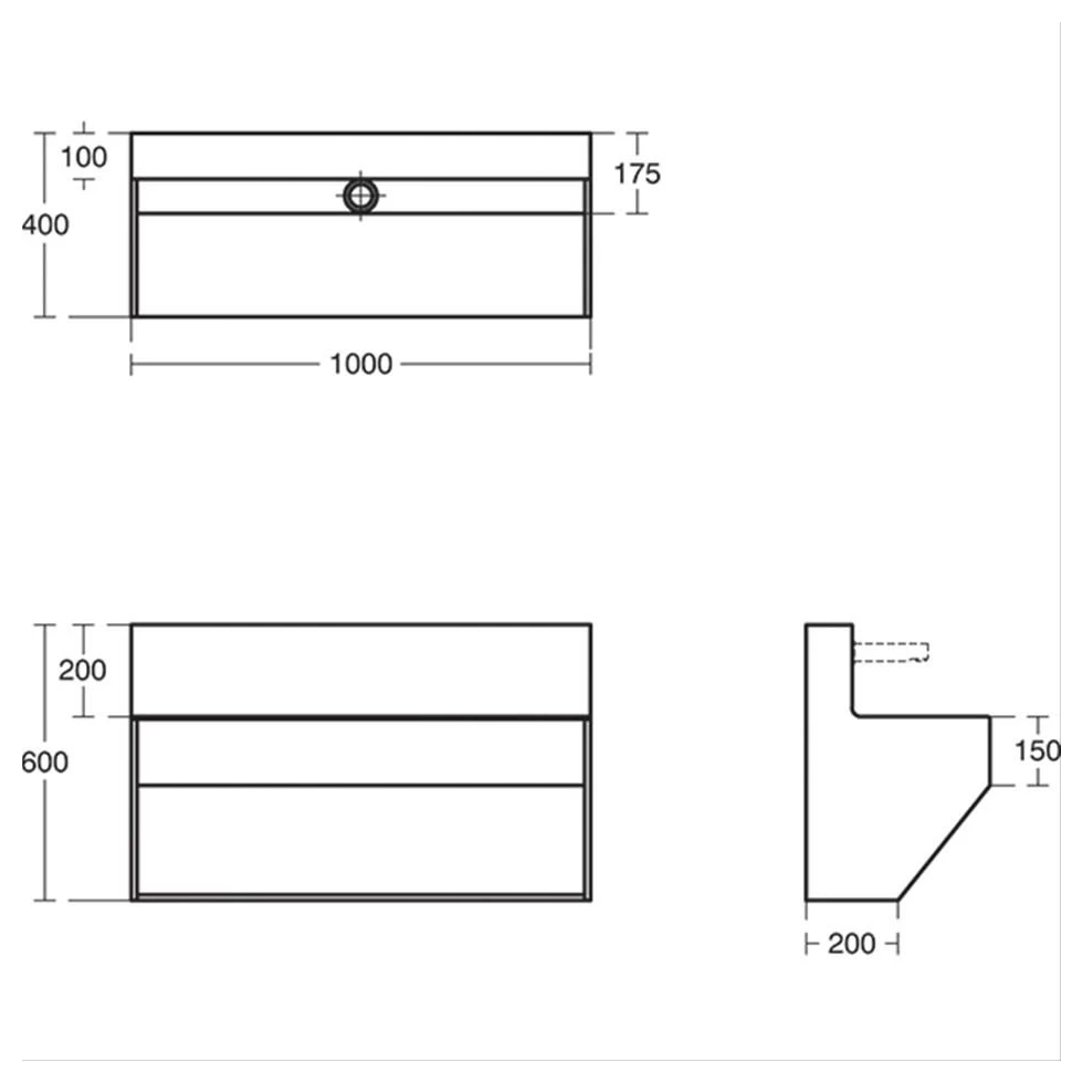 Contour 21 Splash 100cm Wall Hung Wash Trough, Undrilled, with Upstand and Light Grey Front Panel