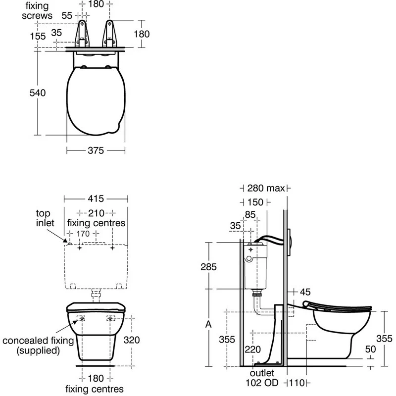 Contour 21 Splash 355mm wall hung rimless bowl