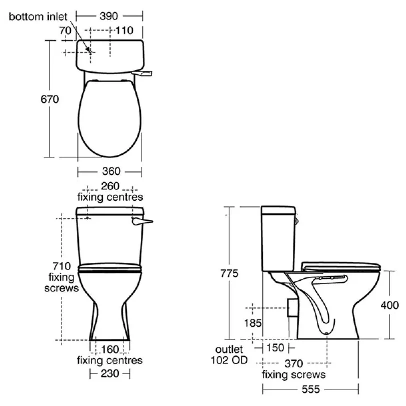 Sandringham 21 Close Coupled WC Pan, Lever Cistern and Soft Close Seat