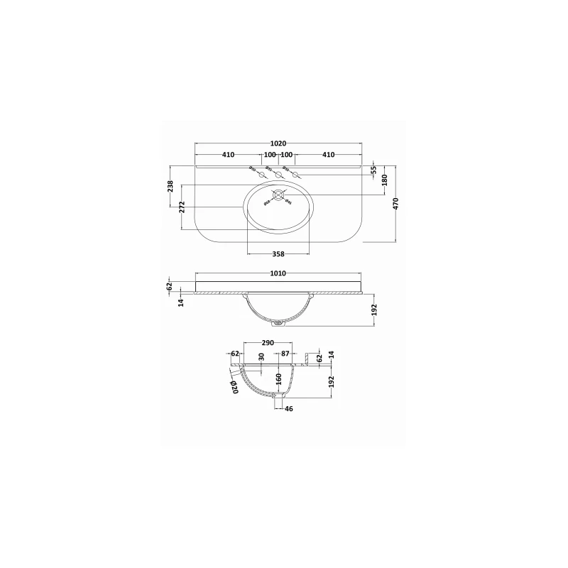 Luxuriously deep basin provides ample space with room at the side for toiletries