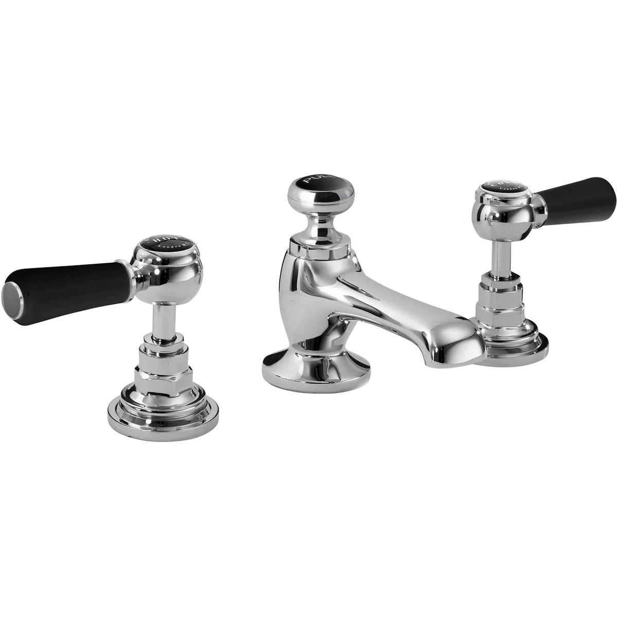 Bayswater Black 3 Tap Hole Deck Basin Mixer with Lever & Hex Collar