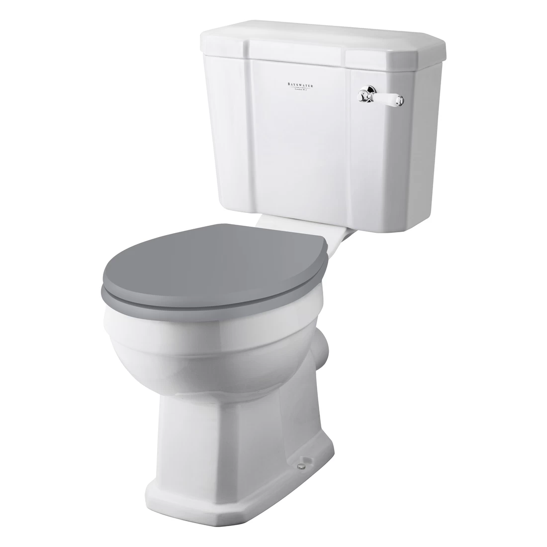 Bayswater Fitzroy Close Coupled Toilet with Ceramic Lever and Plummett Grey Traditional Toilet Seat