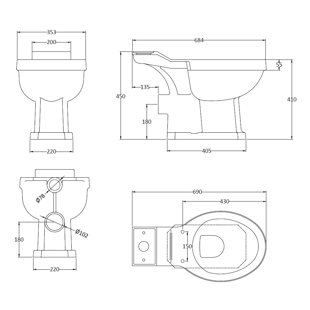 Edwardian style traditional close coupled pan