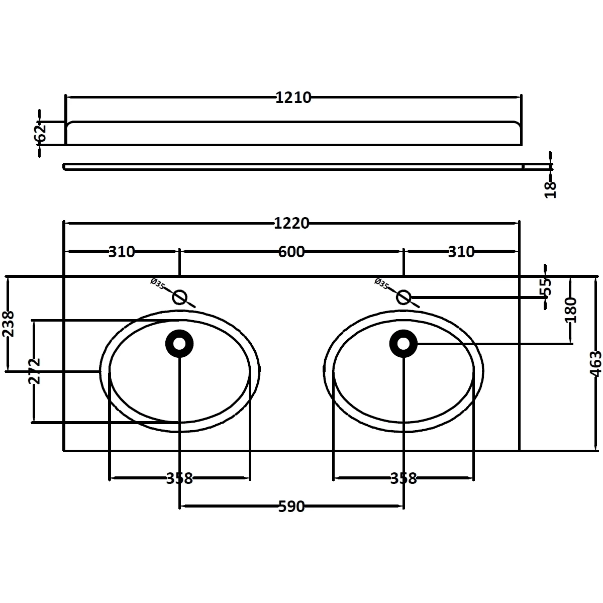 Bayswater Grey 1200mm Double Bowl 1 Tap Hole Marble Top