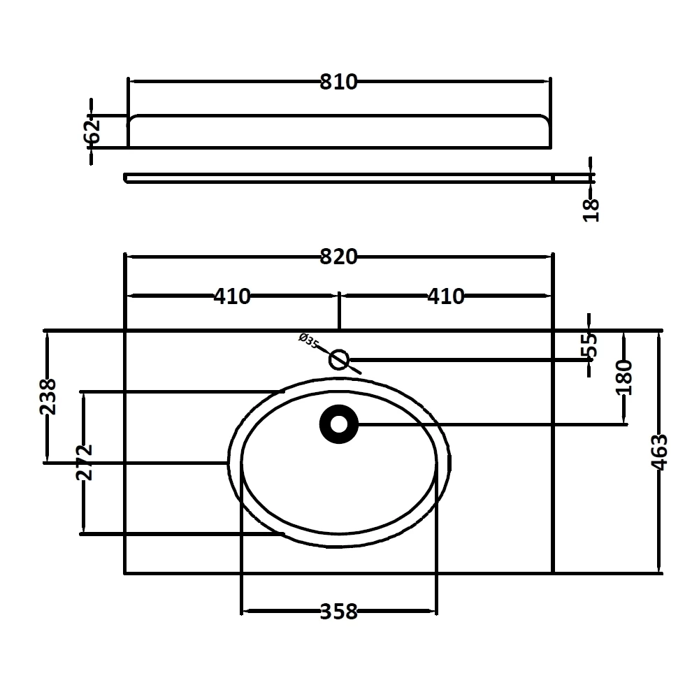 Bayswater Grey 800mm Single Bowl 1 Tap Hole Marble Top