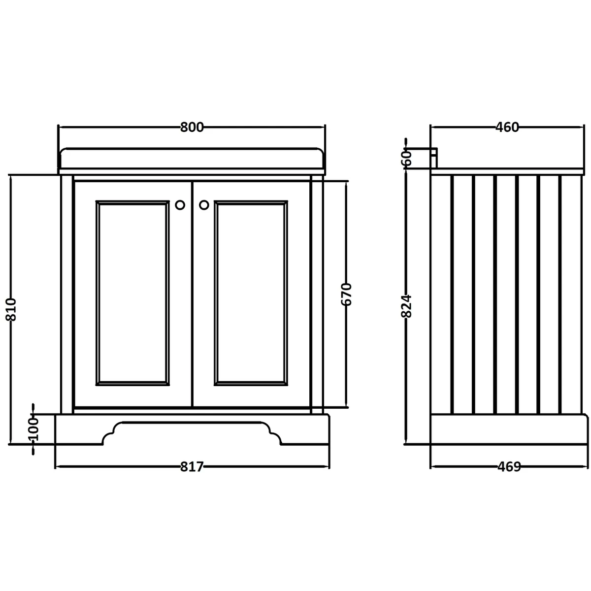 Bayswater Plummett Grey 800mm 2 Door Basin Cabinet