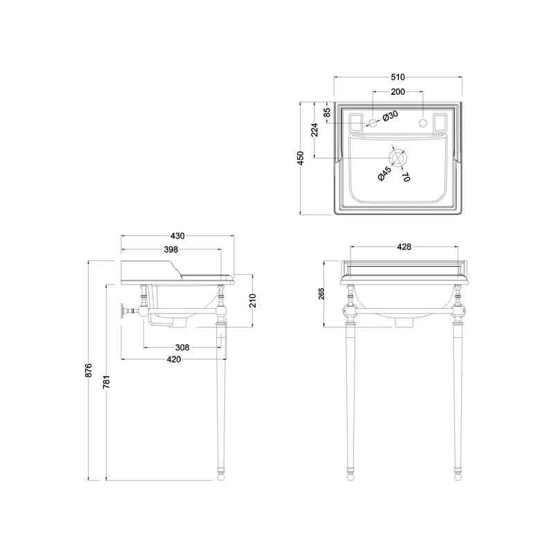 Consists of 1 x Classic basin 50cm 1 taphole (B20 1TH) and 1 x 50cm basin wash stand chrome plated brass fittings (T52 CHR)
