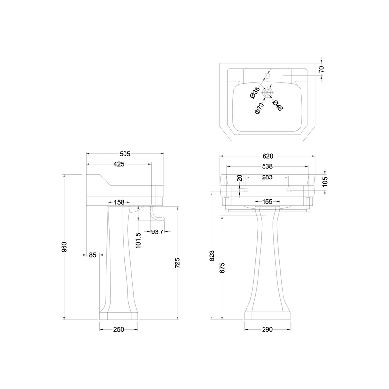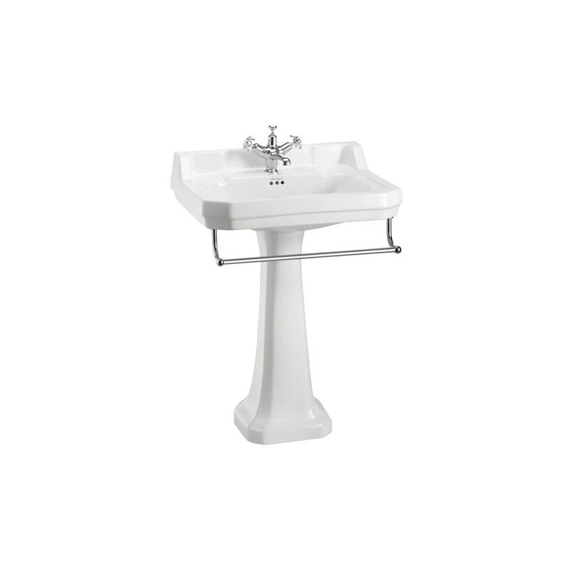 Edwardian 61 x 51cm One Tap Hole Basin, Towel Rail and Regal Pedestal
