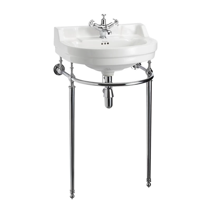 Edwardian Round 56 x 47cm One Tap Hole Basin and Regal Chrome Basin Stand