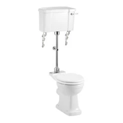Consists of 1 x Regal raised height close coupled pan (P12), 1 x Close Coupled / Low level cistern 44 cm Ceramic Lever (including bottom entry cistern fittings) (C3) and 1 x Medium level flush pipe kit including medium ornate brackets in chrome (T33 CHR)