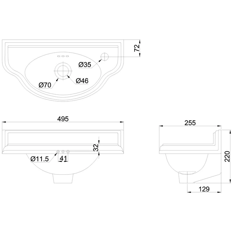 Small 50.5cm Curved Front Cloakroom Basin with 1 Right Taphole