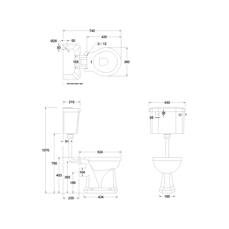 Water Inlet valve hole is located on the base of cistern tank on the right hand side
