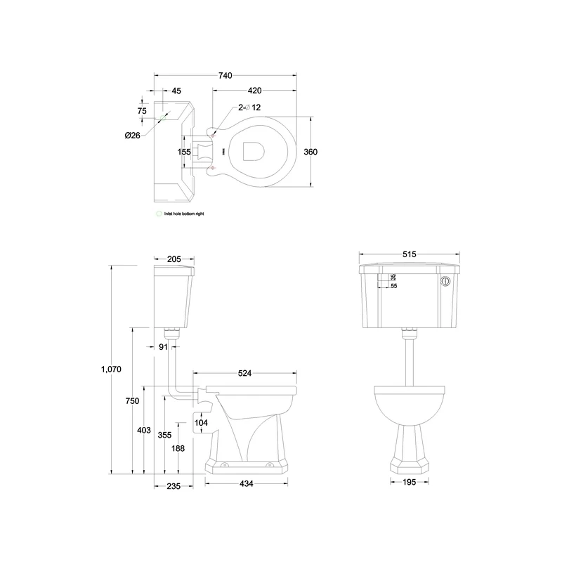 Water Inlet valve hole is located on the base of cistern tank on the right hand side