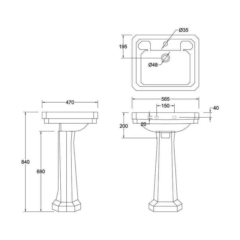 Victorian 56x47cm 1 Taphole Basin, Towel Rail and Standard Pedestal