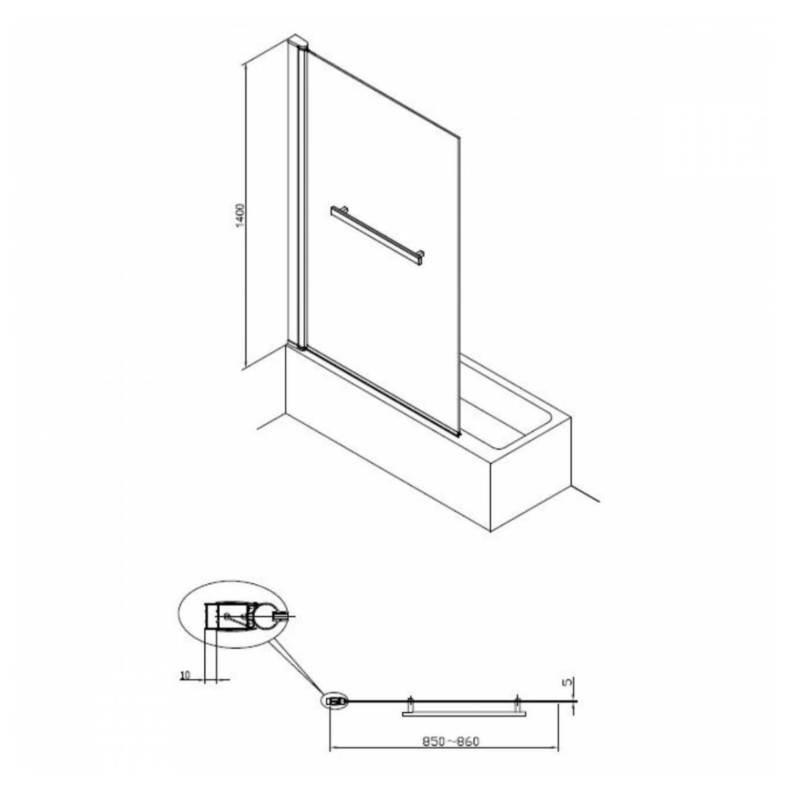 Essential Designer 1400mm x 850mm x 5mm Bath Screen with Handle
