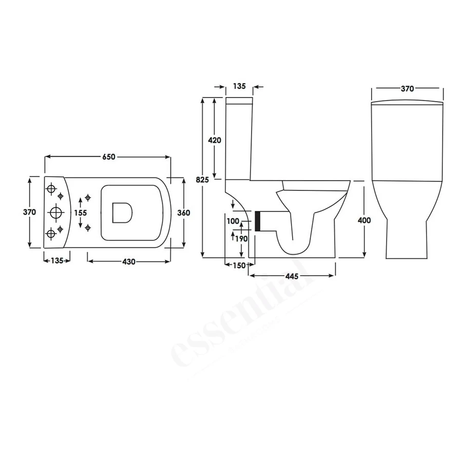 Cistern Width: 370mm, Height: 420mm, Depth: 135mm