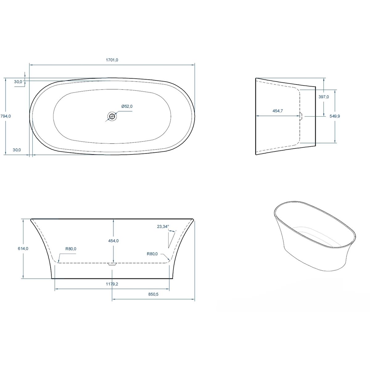 Ion 1700 x 800mm twin skinned luxury freestanding double-ended bath