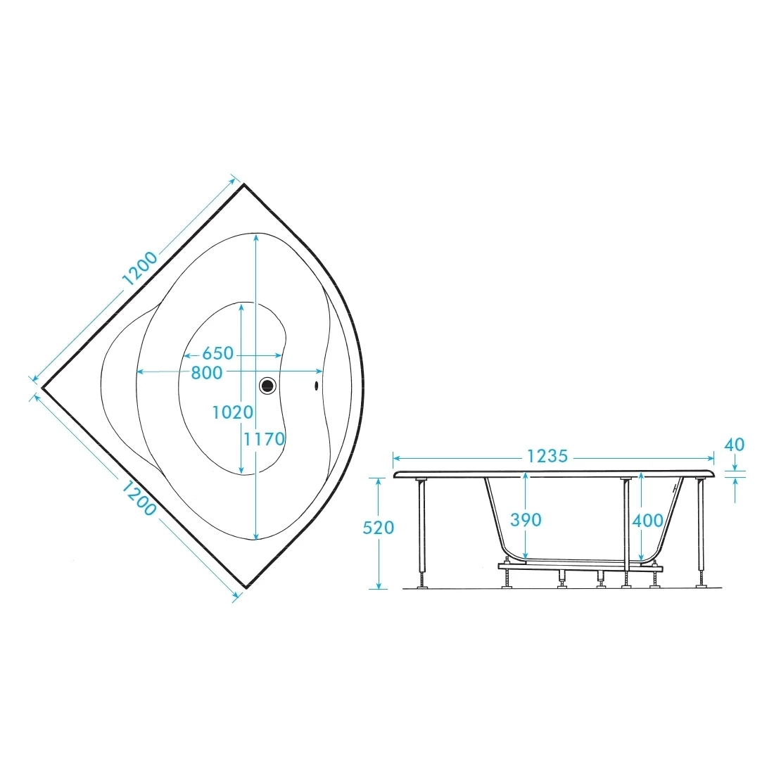 Lagoon 1200 x 1200mm corner bath
