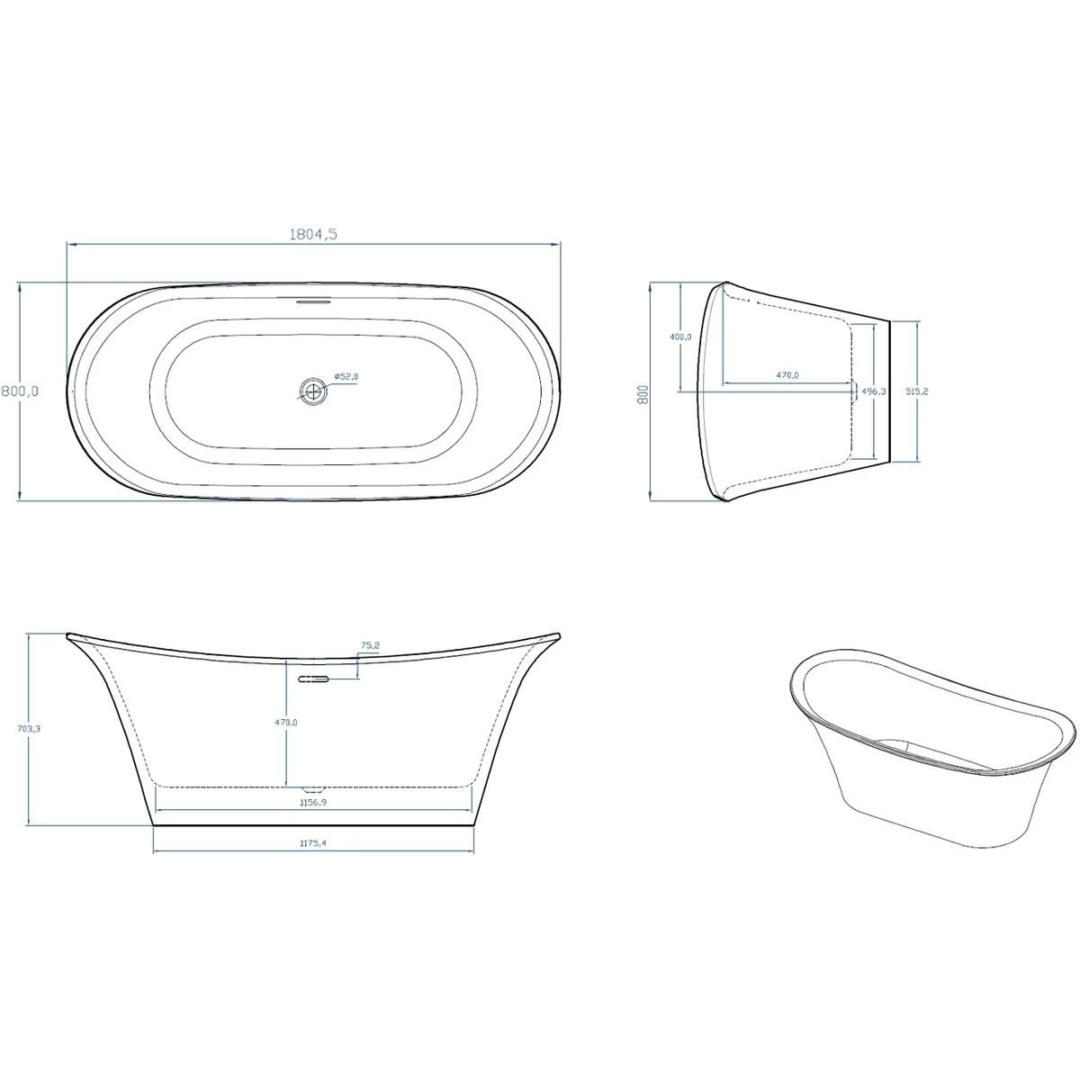 Bow Graphite 1800 x 800mm twin skinned luxury freestanding double-ended traditional bath