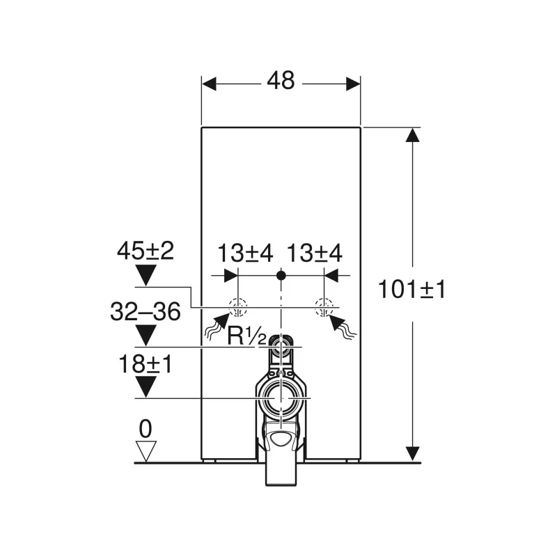 For floor-standing WCs with P-bend and water inlet height 32-36 cm above the floor (EN 33)