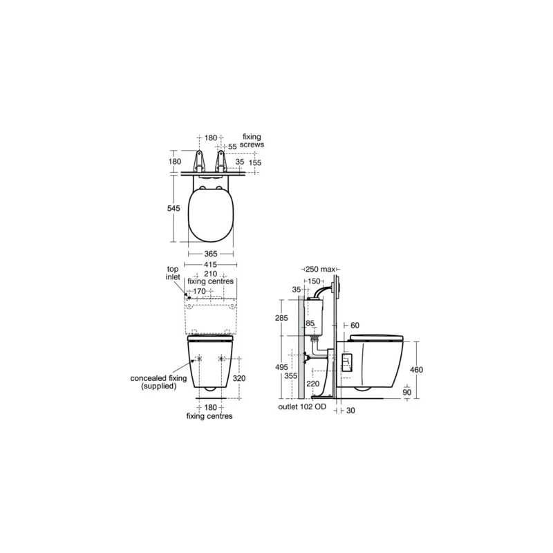 Ideal Standard Concept Freedom Raised Height Wall Hung Toilet with Soft Close Seat
