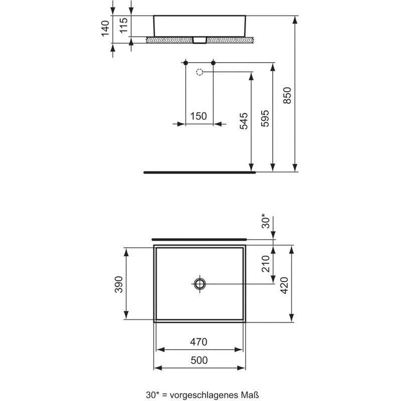 Strada 50cm Vessel basin no tapholes
