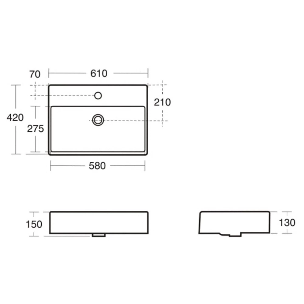 Strada 60cm vessel countertop basin (glazed back) one taphole