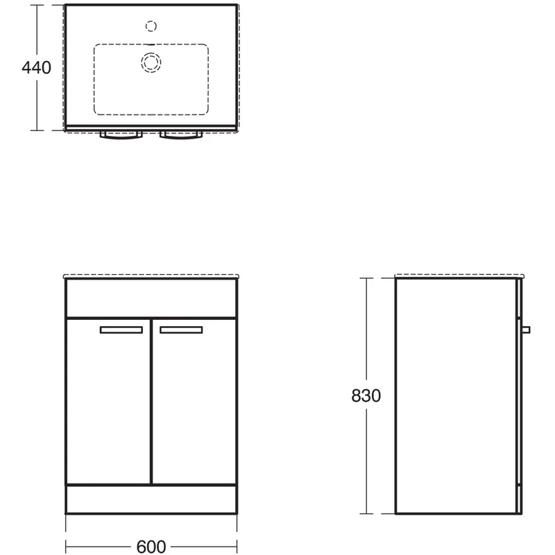 Tempo floor standing 600mm vanity unit with 2 doors