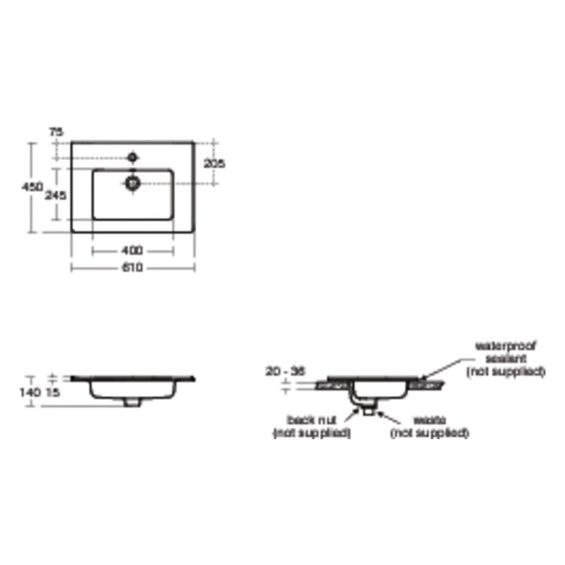 Tempo 60cm vanity basin – one taphole