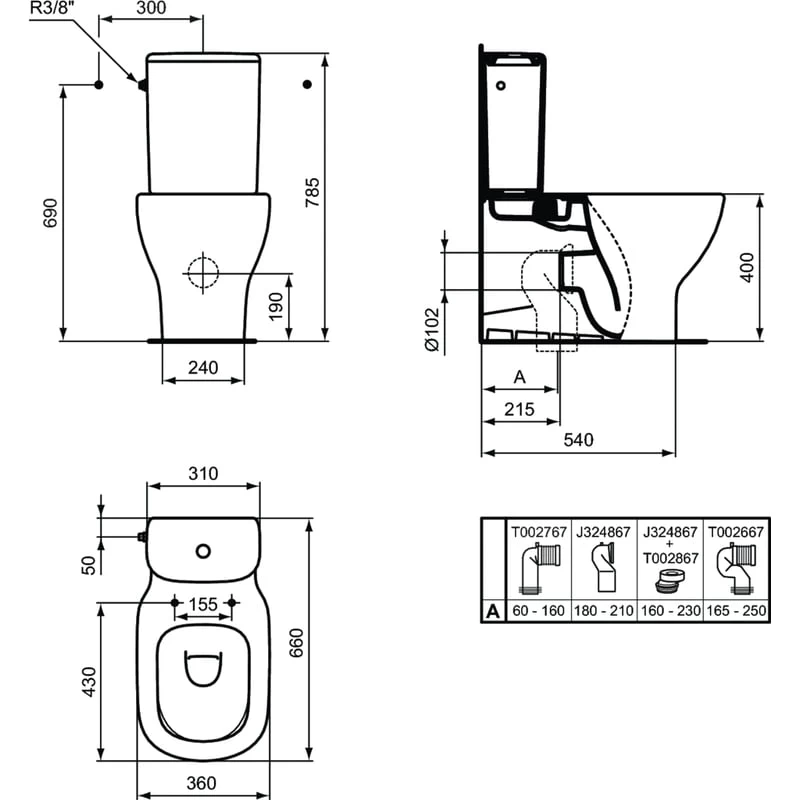 Tesi close coupled back-to-wall toilet bowl with horizontal outlet, isolation access and Aquablade technology