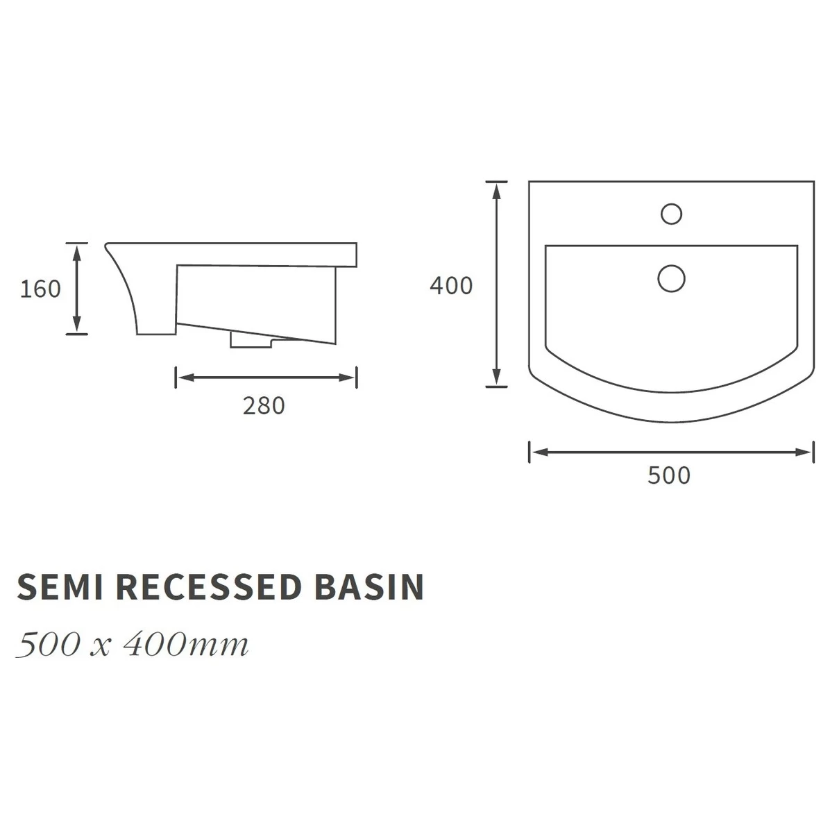 Brooklyn 500x400mm 1 Tap Hole Semi Recessed Basin