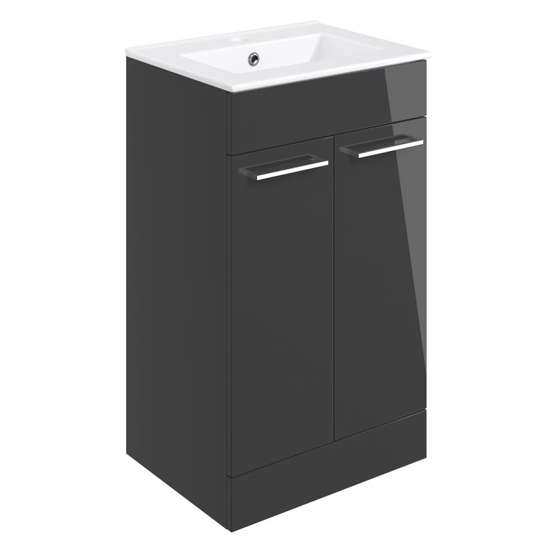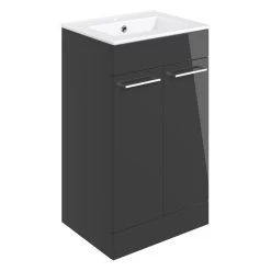 Celo 510mm Floor Standing 2 Door Basin Unit with Basin, Anthracite Gloss