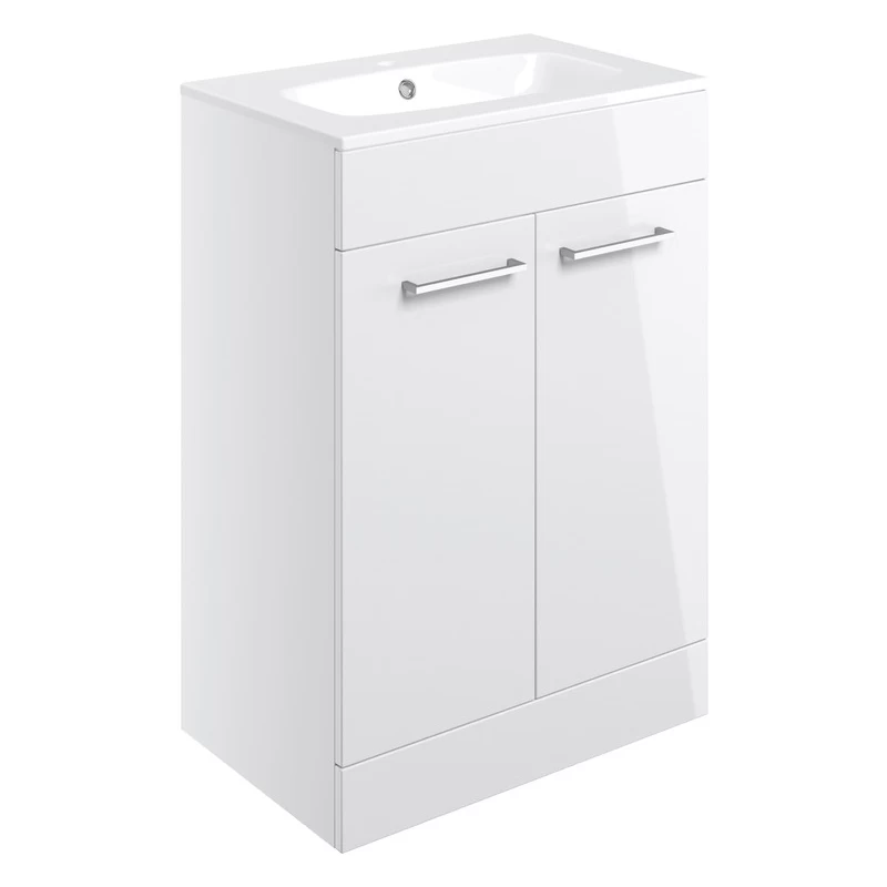 Iona Celo 610mm Floor Standing 2 Door Basin Unit with Basin, White Gloss