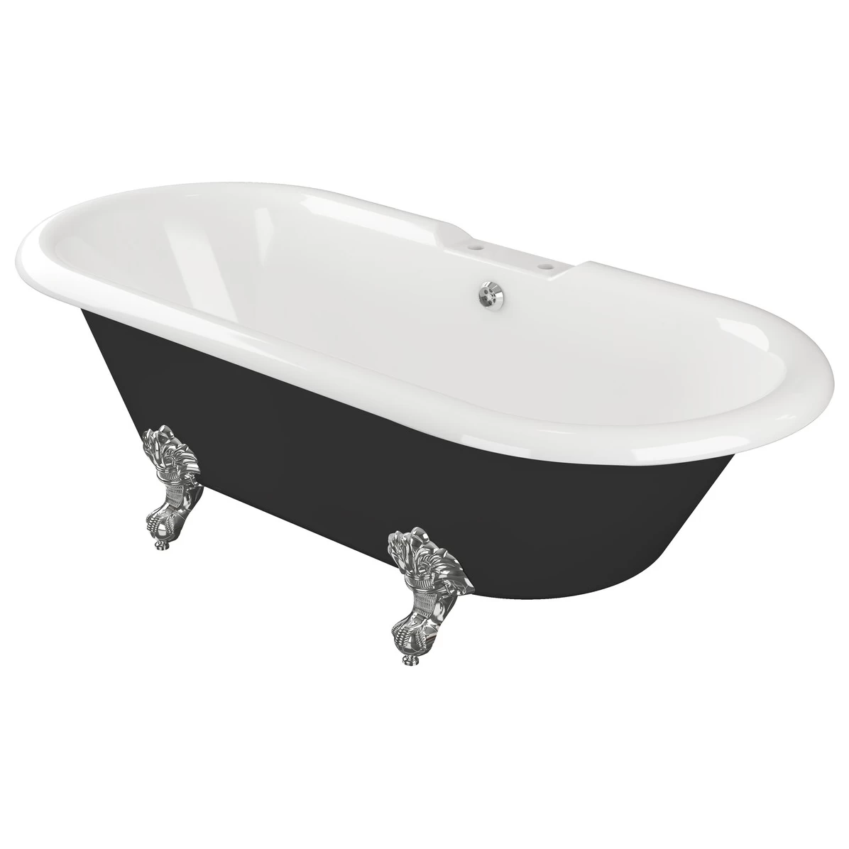Master Freestanding 2 Tap Hole 1690x740x620mm Bath with Feet, Black