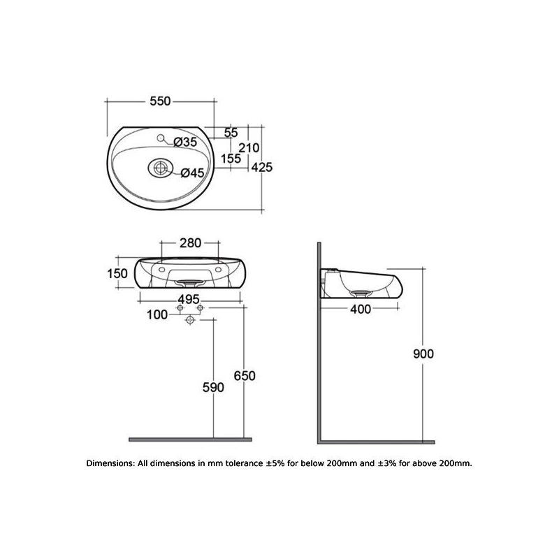 RAK Cloud 55cm Wash Basin 1 Tap Hole