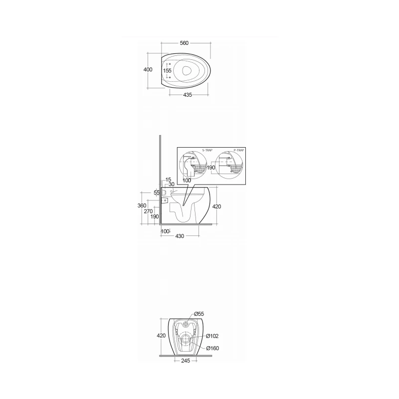 Cloud Back To Wall WC Pan with Universal Trap in Gloss Alpine White
