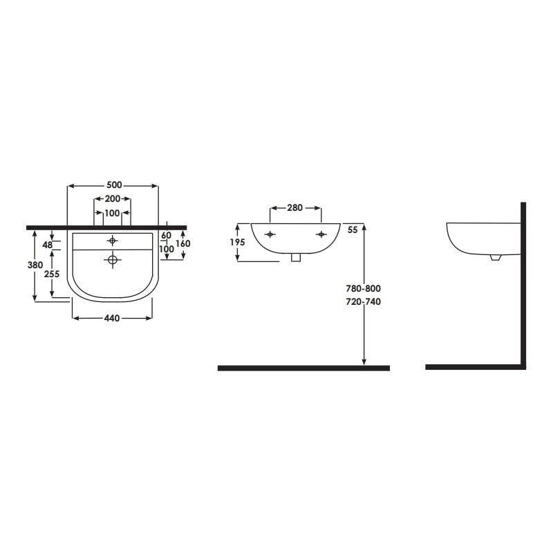 Compact 50cm Special Needs Basin, No Tap Hole or Overflow