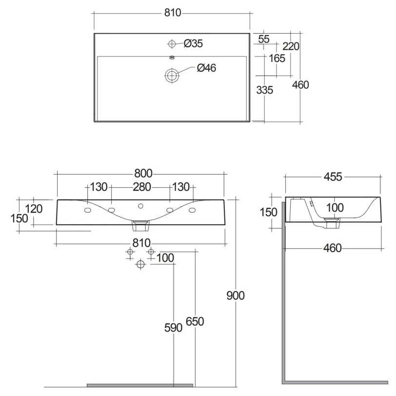 RAK Des 810mm Wall Hung Basin