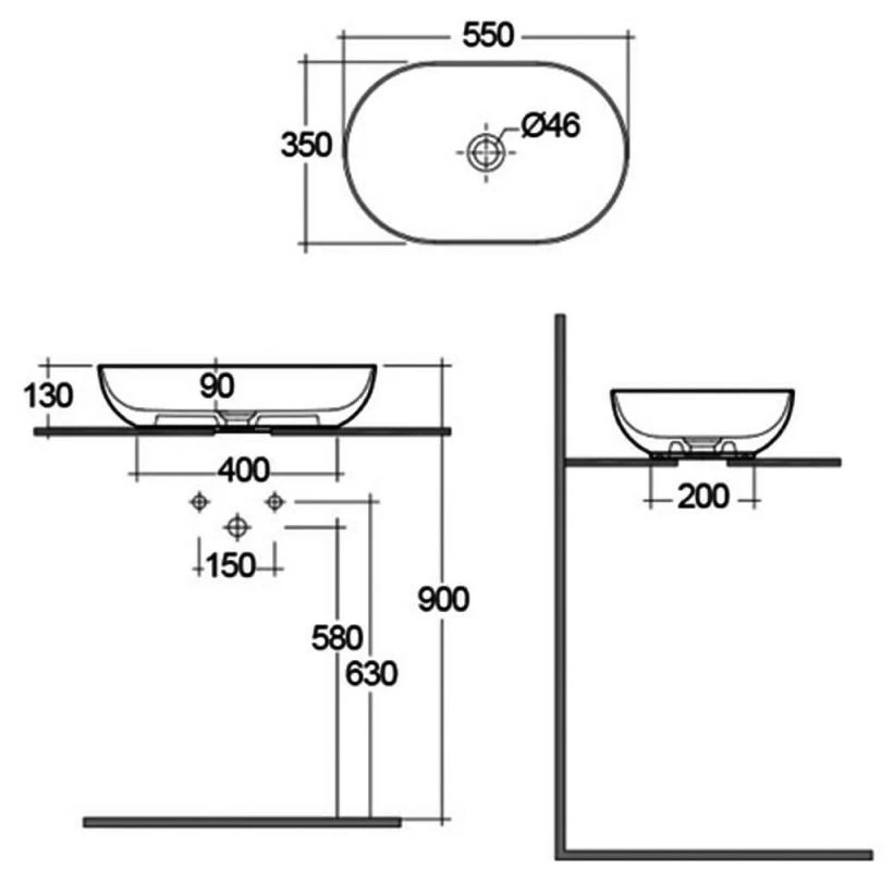RAK Feeling Slim Oval Countertop Wash Basin 550mm