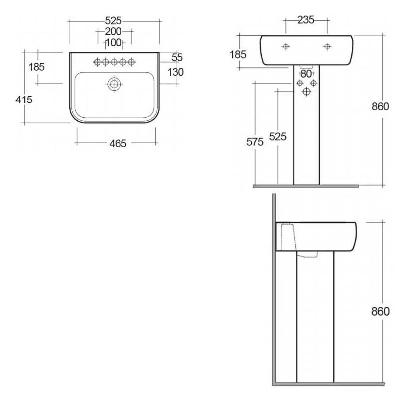 RAK Metropolitan 520mm 2 Tap Hole Basin and Full Pedestal Pack