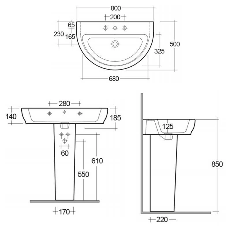 RAK Moon 800mm 1 Tap Hole Basin and Full Pedestal Pack