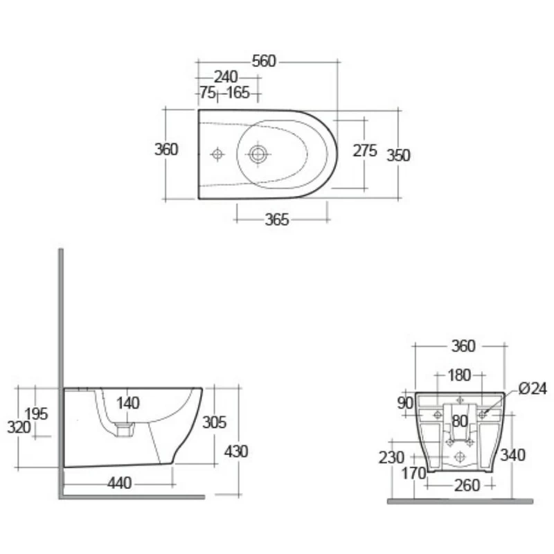 RAK Moon Wall Hung Rimless Bidet with Hidden Fixations