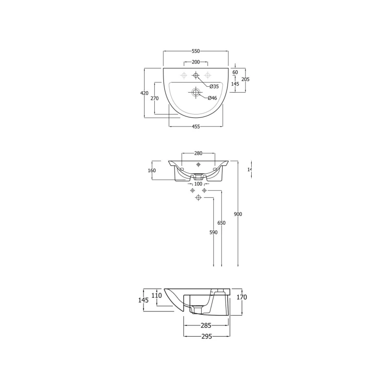 Rak Morning 55cm Semi Recessed Basin, 1 Taphole