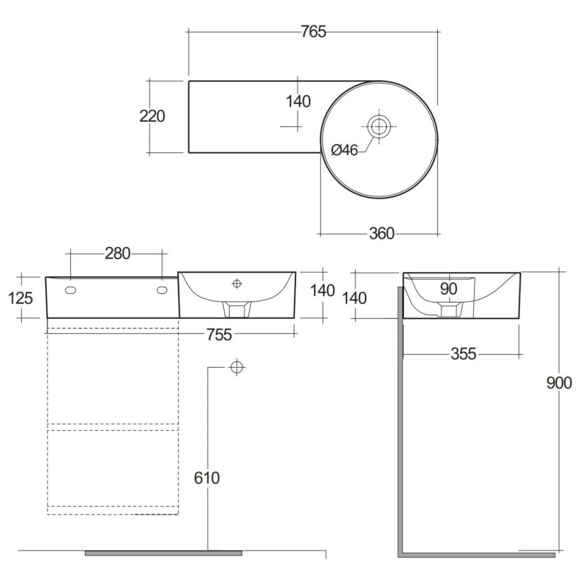 RAK Petit Round Wall Hung Basin with Left Ledge