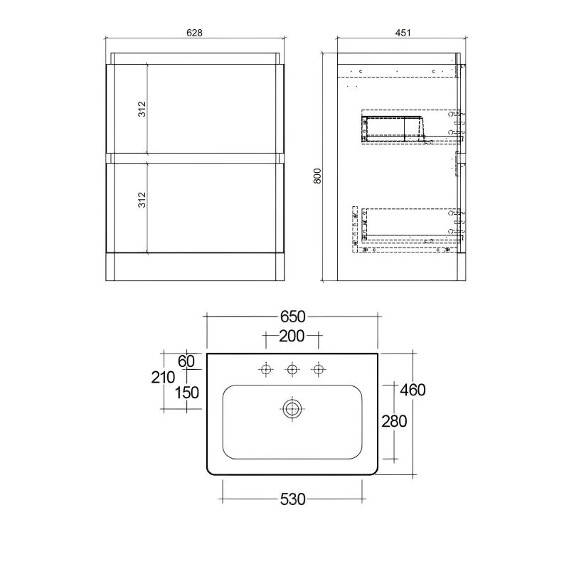 RAK Resort 2 Drawer Floor Vanity Unit and Basin 650mm