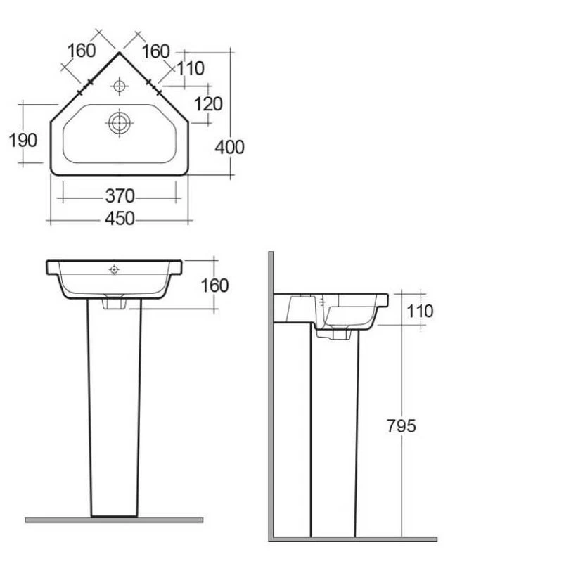 RAK Resort 450mm 1 Tap Hole Corner Basin and Full Pedestal Pack