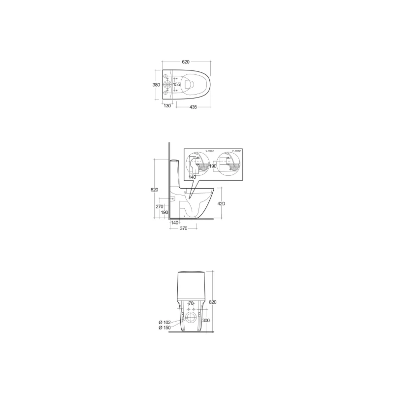 Sensation Close Coupled Fully Back to Wall WC Pan, Cistern and Soft Close Urea Toilet Seat