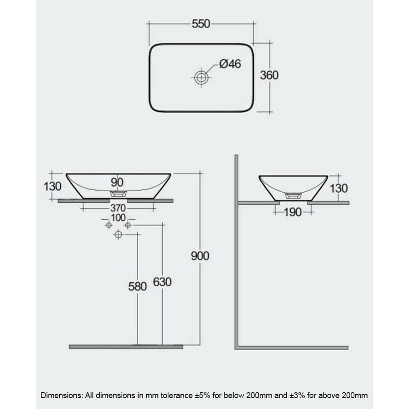 RAK Variant Rectangular Counter Top Wash Basin 55cm