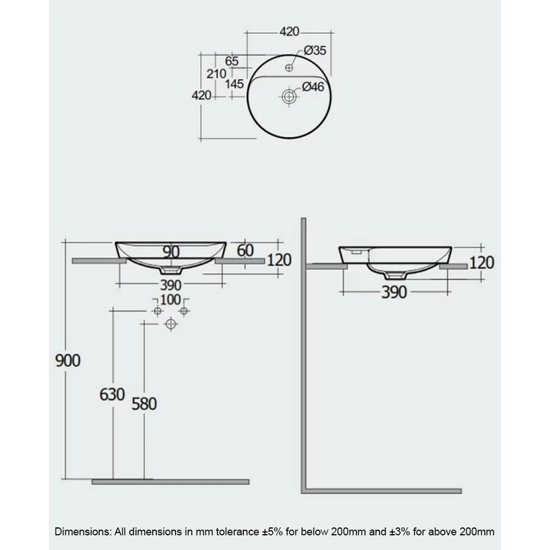 RAK Variant Round Drop-In Wash Basin 42cm 1 Tap Hole with Tap Ledge