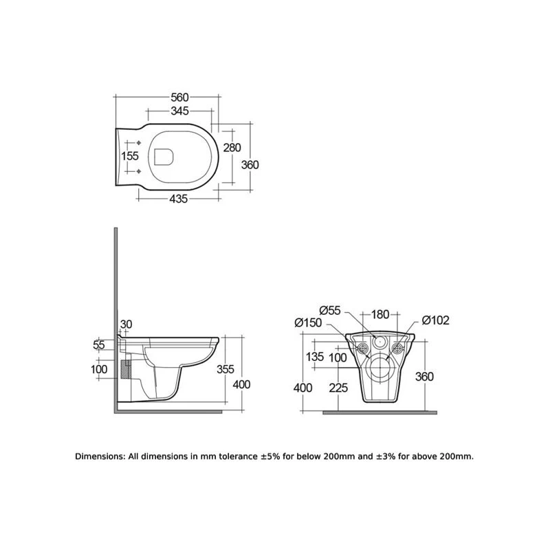 RAK Washington Wall Hung WC Pan with Matt Greige Soft Close Toilet Seat (Wood)